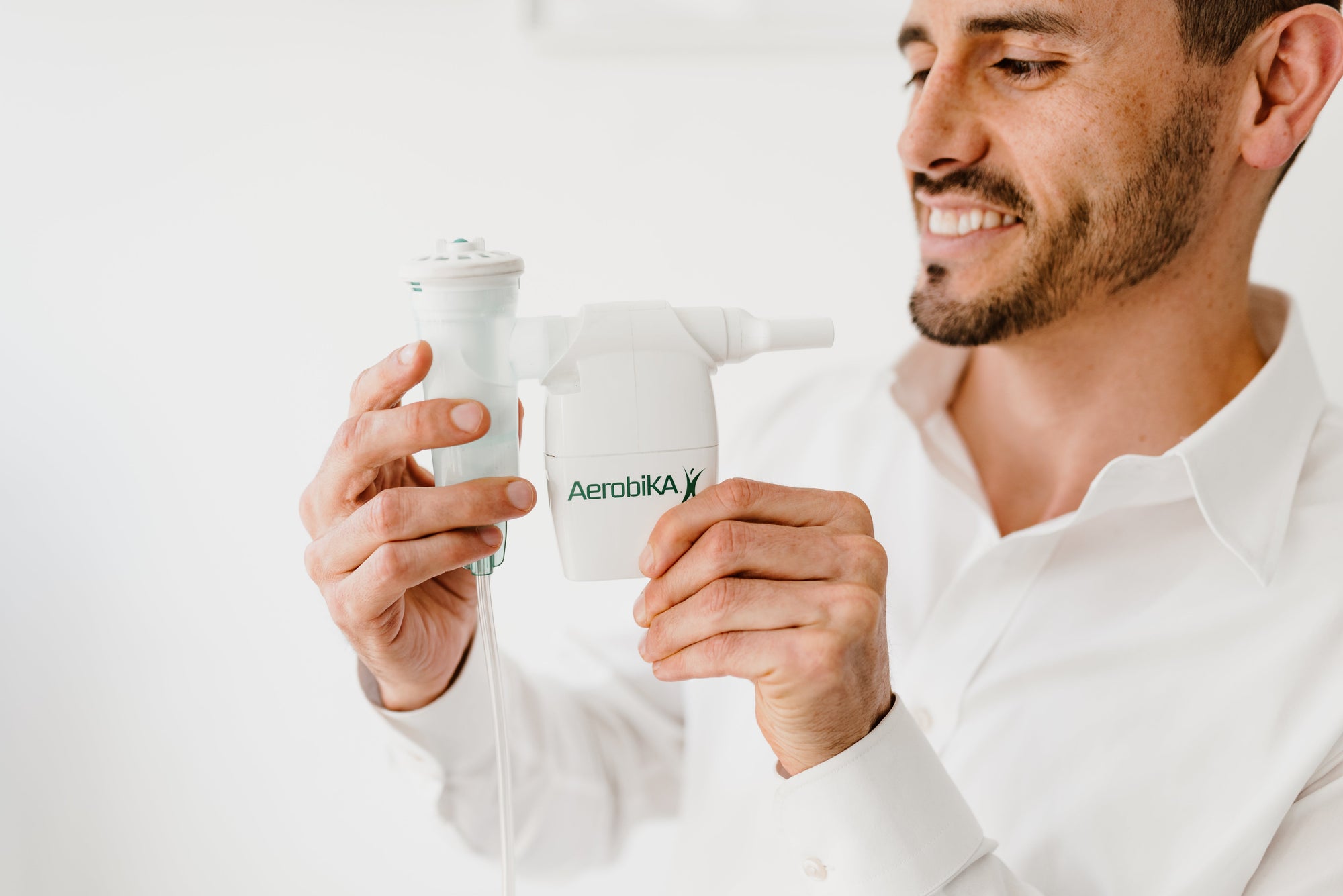 The Aerobika is a drug free device used to help treat COPD, Bronchiectasis and Cystic Fibrosis. The small portable device relies on Oscillating Positive Expiratory Pressure (OPEP) to assist in the clearance of excess mucus secrections from your lungs.